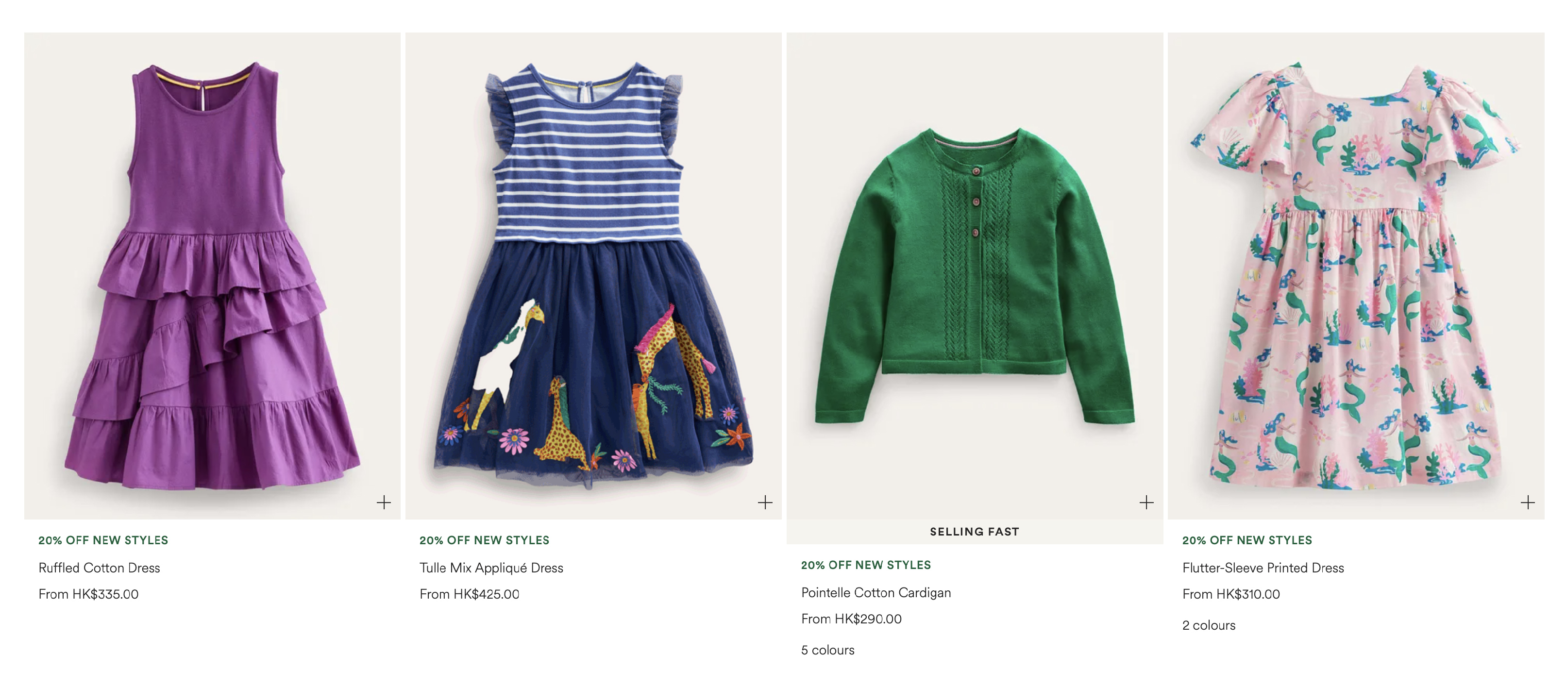 小編個人很欣賞Boden的童裝設計,真的很有童真,有的會有機關,可以打開車身看到入面的小動物圖案。Boden童裝顏色襯托出色,質料好,特別冬天衫亦有好多款式,夏天泳裝男女童裝也很可愛。